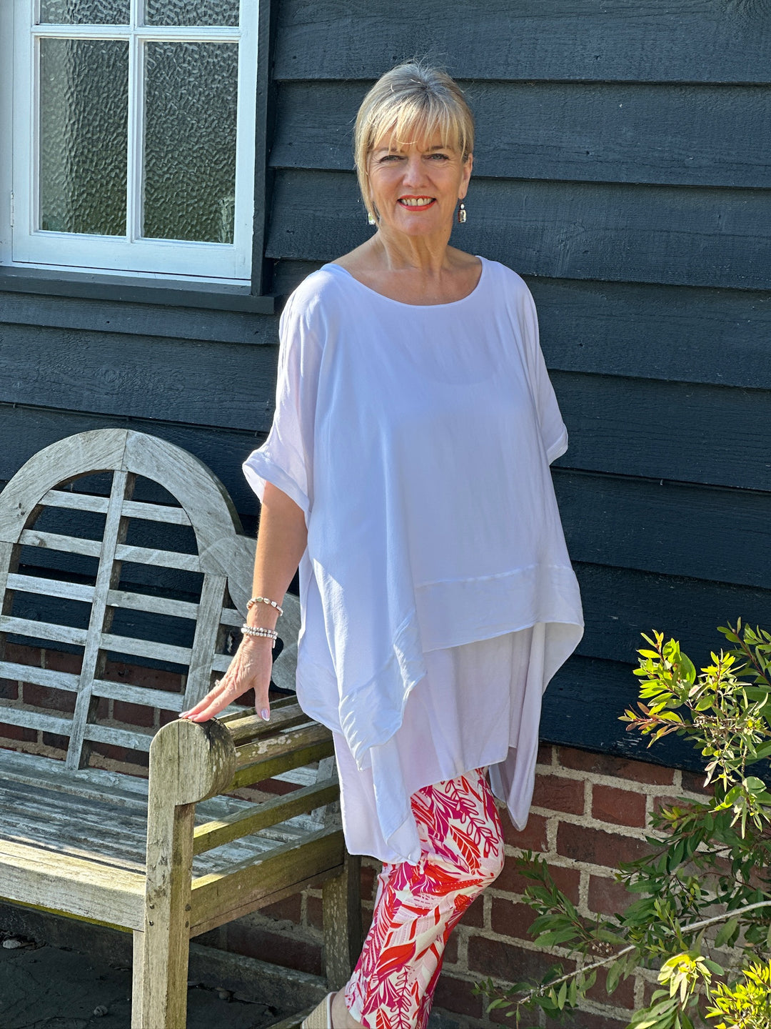 "Beautiful, elegant and cool top which looks gorgeous with the silk trousers. Lovely and floaty!" - Vicki S.