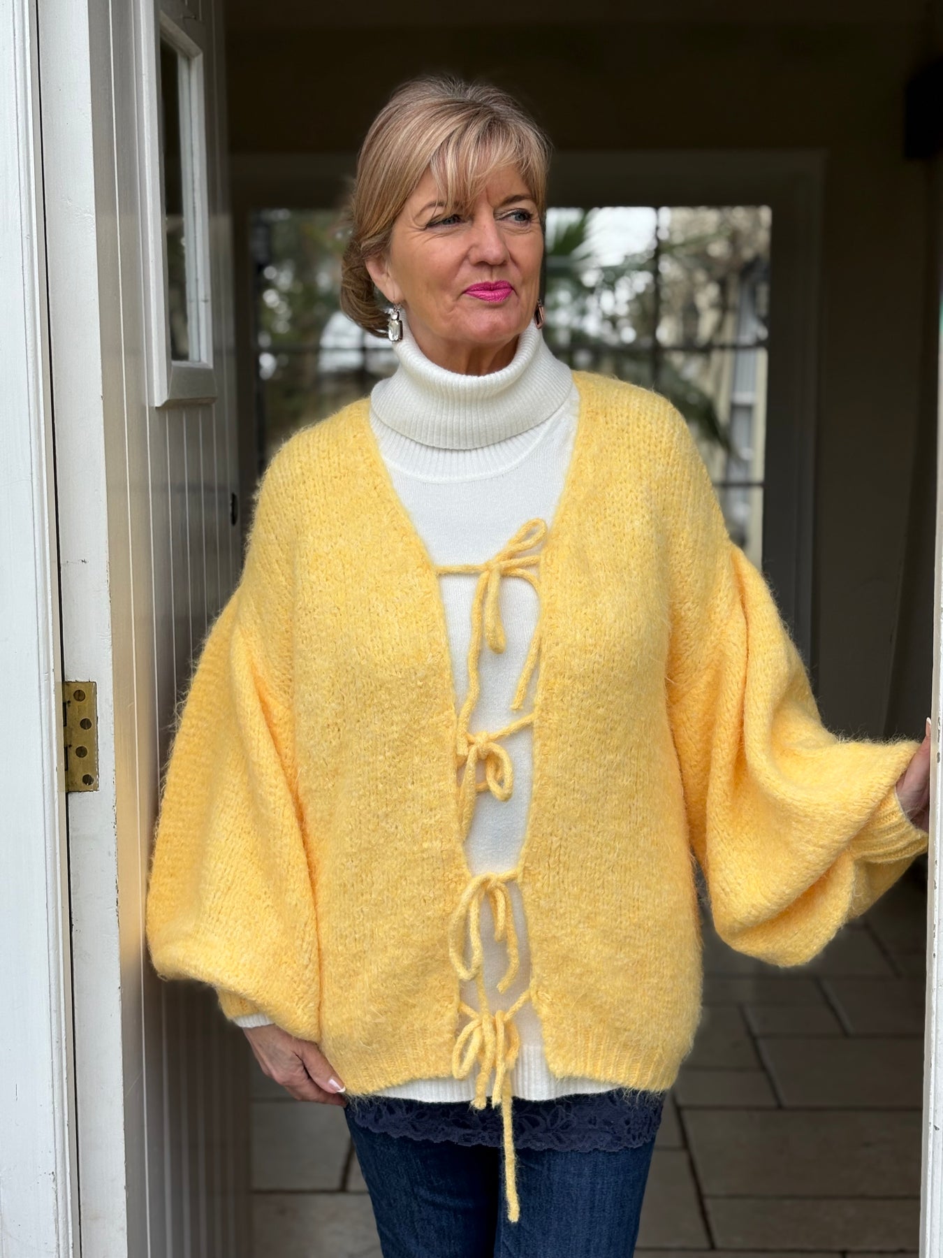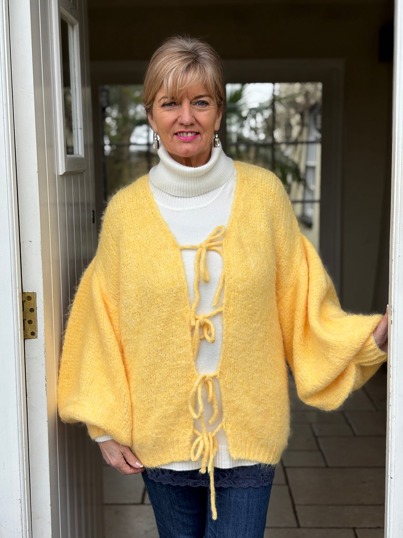 Make a bold statement with this vibrant Tie Up Knit Top in sunny yellow. The distinctive tie-up front detail adds contemporary flair and allows for customizable fit, ensuring comfort tailored to you. Crafted from soft, breathable knit fabric, this top works beautifully as a standalone piece or layered under jackets and cardigans. The cheerful yellow hue instantly brightens any outfit and pairs effortlessly with neutrals or complementary colours. Whether you're dressing up for social occasions or elevating your casual rotation, this top delivers style with practical versatility. Discover how a single piece can transform your styling possibilities.