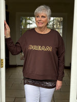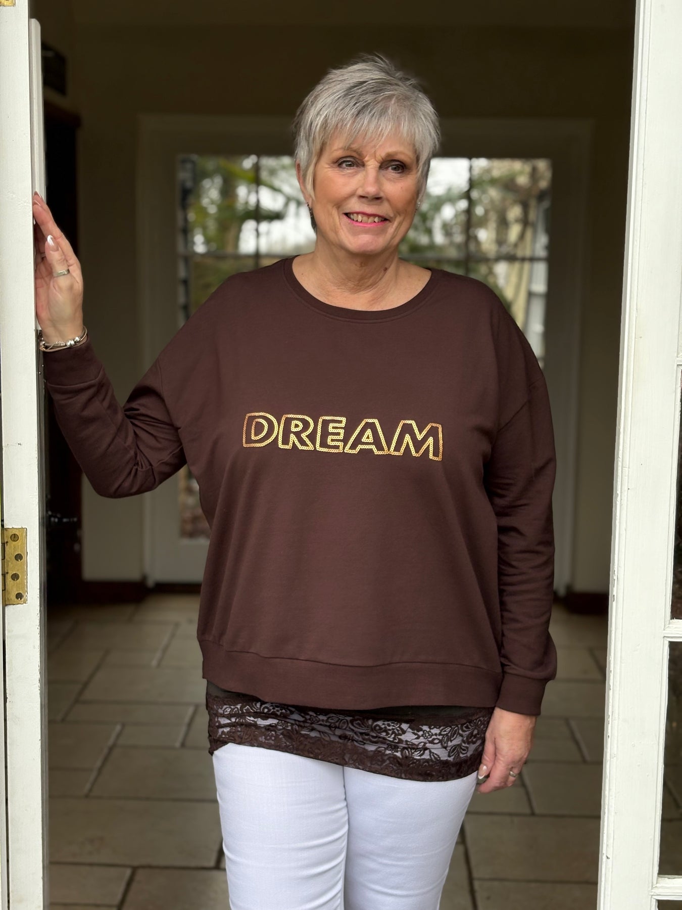 Sequin ‘DREAM' Slogan Sweatshirt | Chocolate Brown