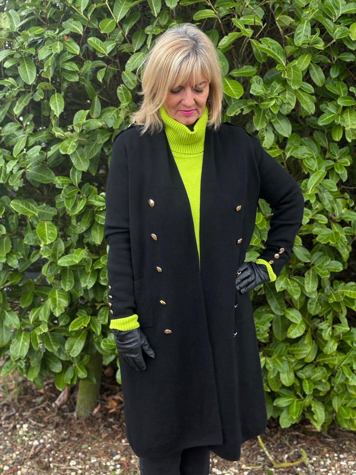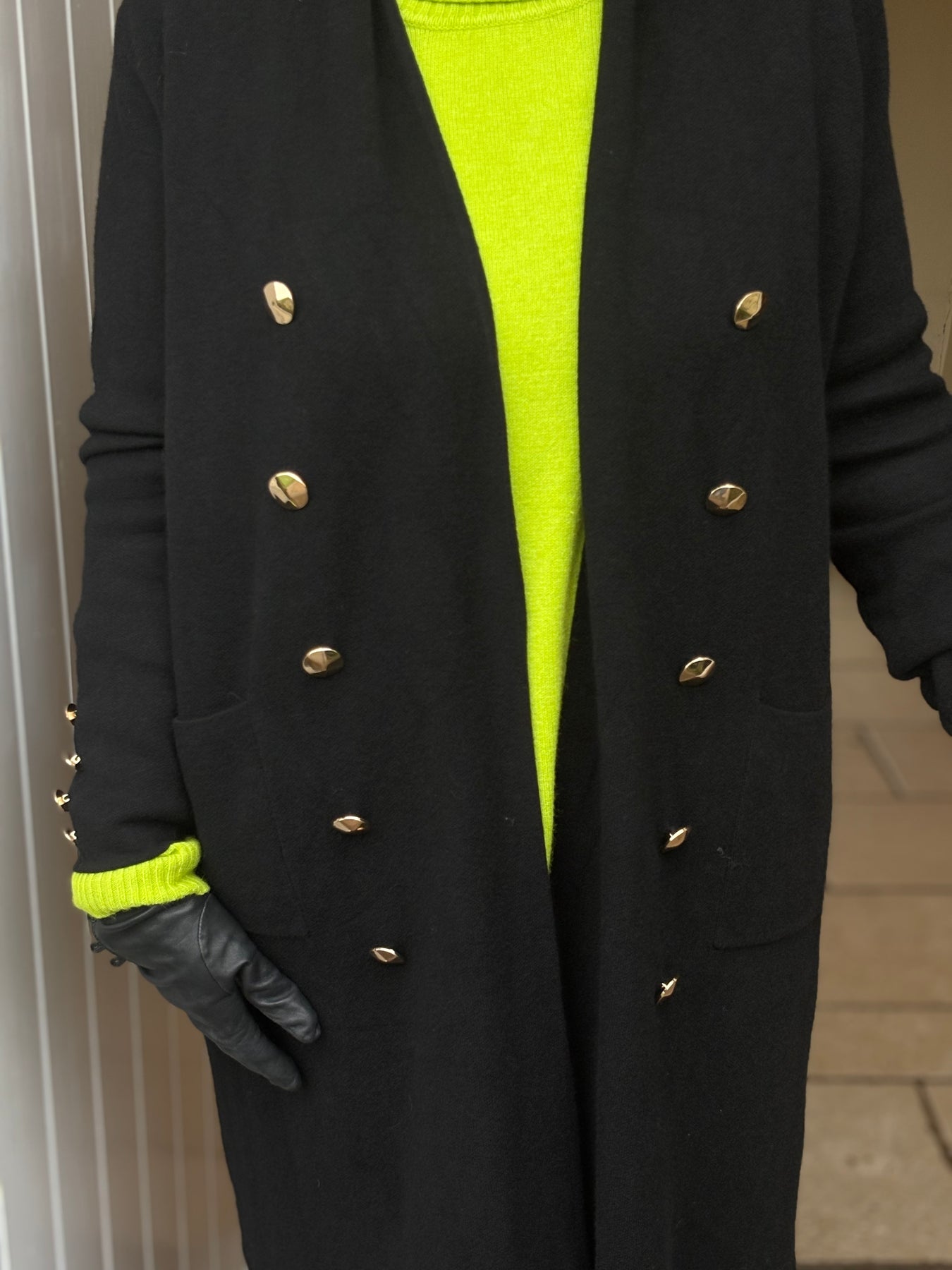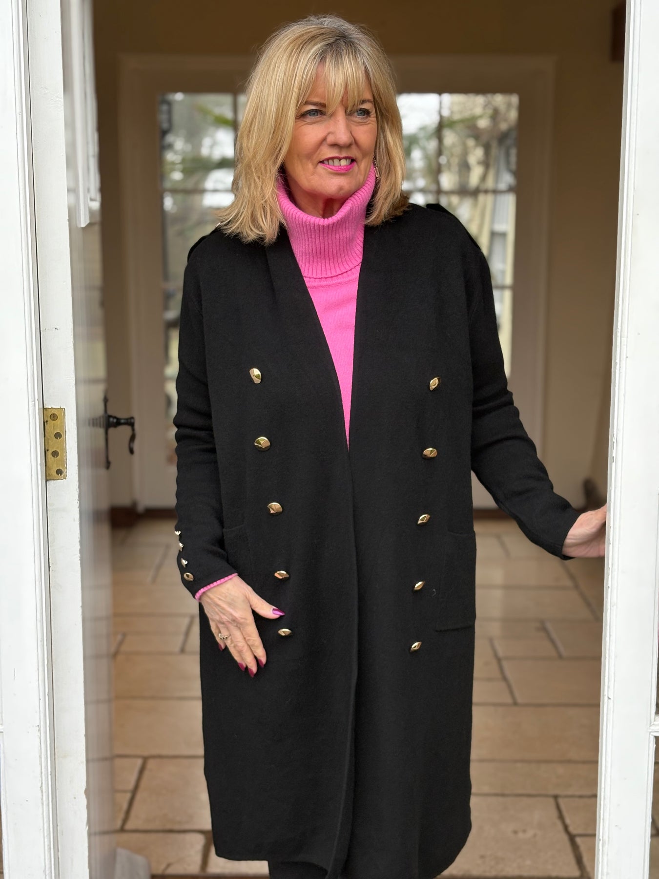 Elevate your everyday wardrobe with this sophisticated Button Detail Longline Jacket in classic black. Designed with refined button detailing that adds visual interest, this piece offers a flattering extended silhouette perfect for layering through seasons. The timeless black hue pairs effortlessly with any outfit, while the structured cut provides a polished, put-together look whether you're heading to the office or out for the evening. Versatile, chic, and endlessly wearable—this jacket is the investment piece your closet has been waiting for.