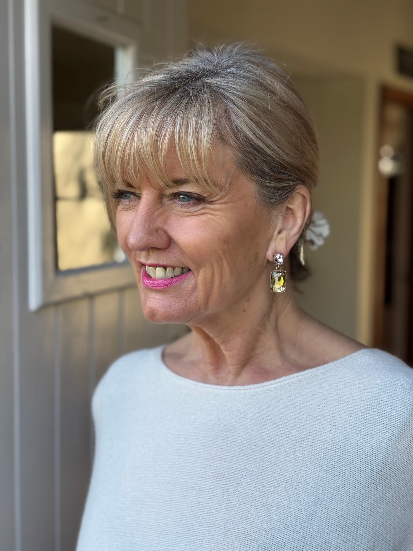 Crafted with shimmering stones set in a polished frame, they catch the light beautifully while bringing a playful yet elegant touch to your look. Whether you’re pairing them with neutral tones or bold colours, these earrings make a stylish statement that’s sure to turn heads.
