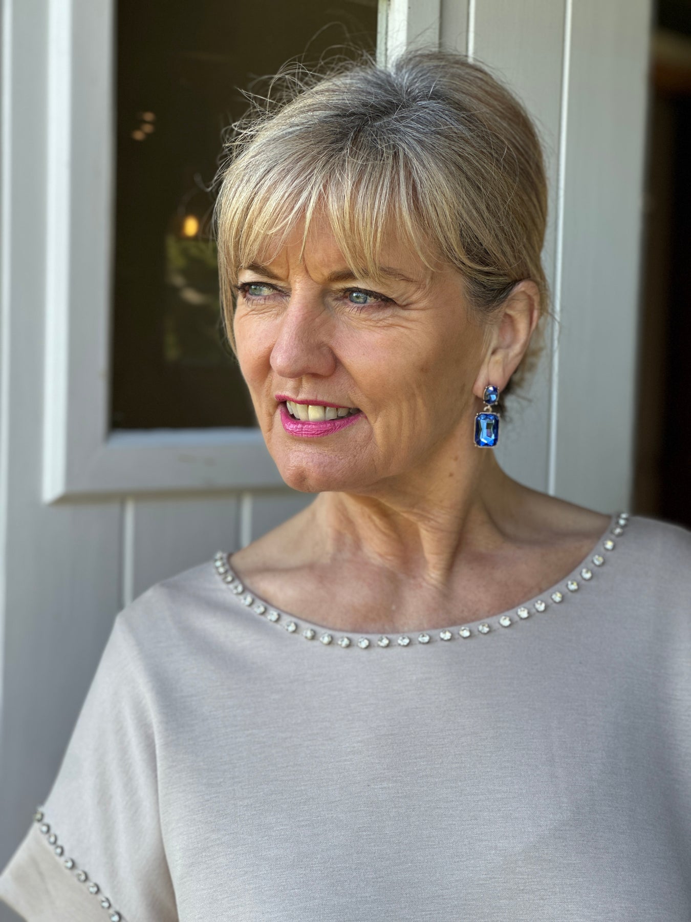 Crafted with shimmering stones set in a polished frame, they catch the light beautifully while bringing a playful yet elegant touch to your look. Whether you’re pairing them with neutral tones or bold colours, these earrings make a stylish statement that’s sure to turn heads.