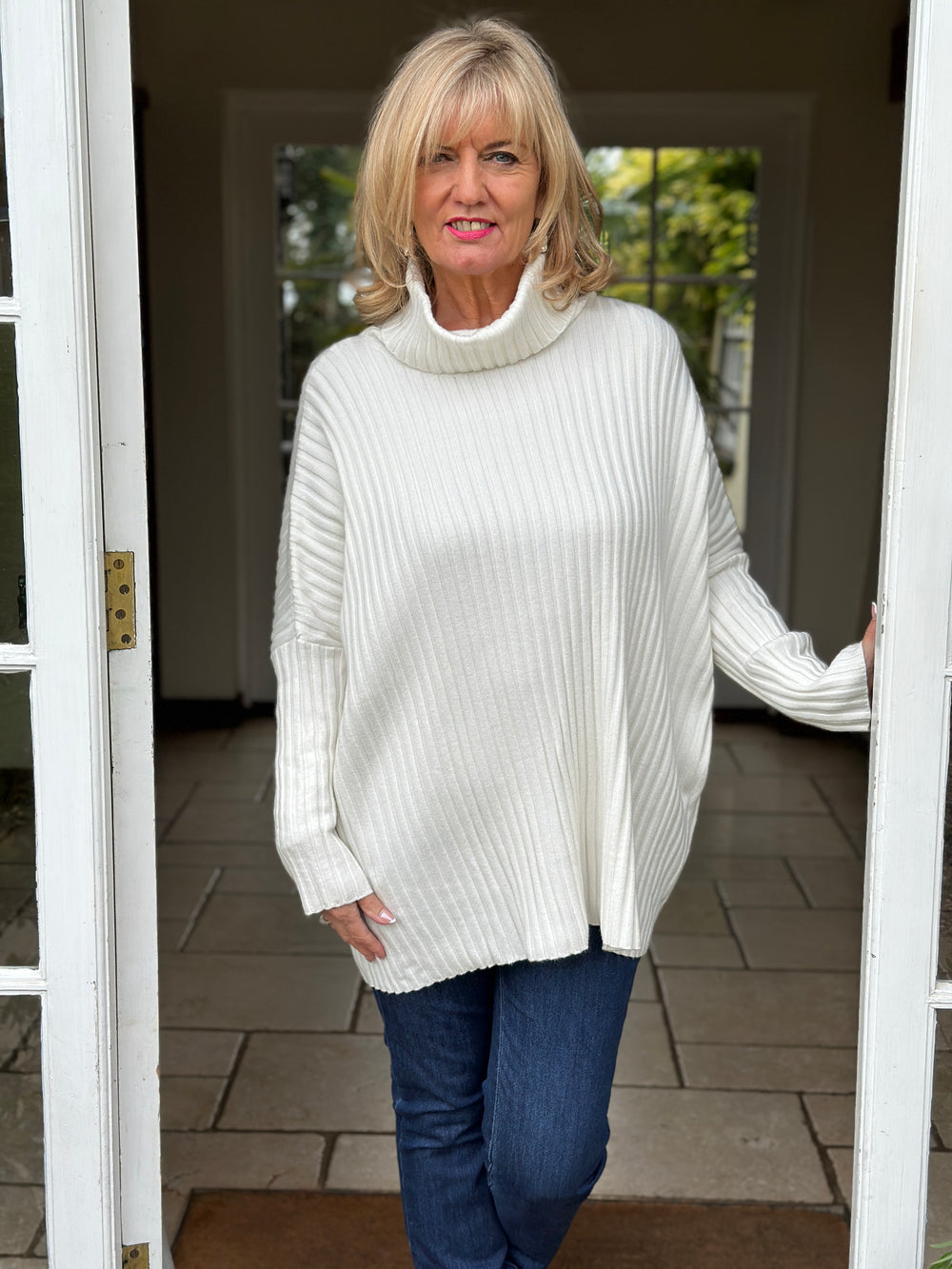 Ribbed Roll Neck Batwing Jumper | Mocha