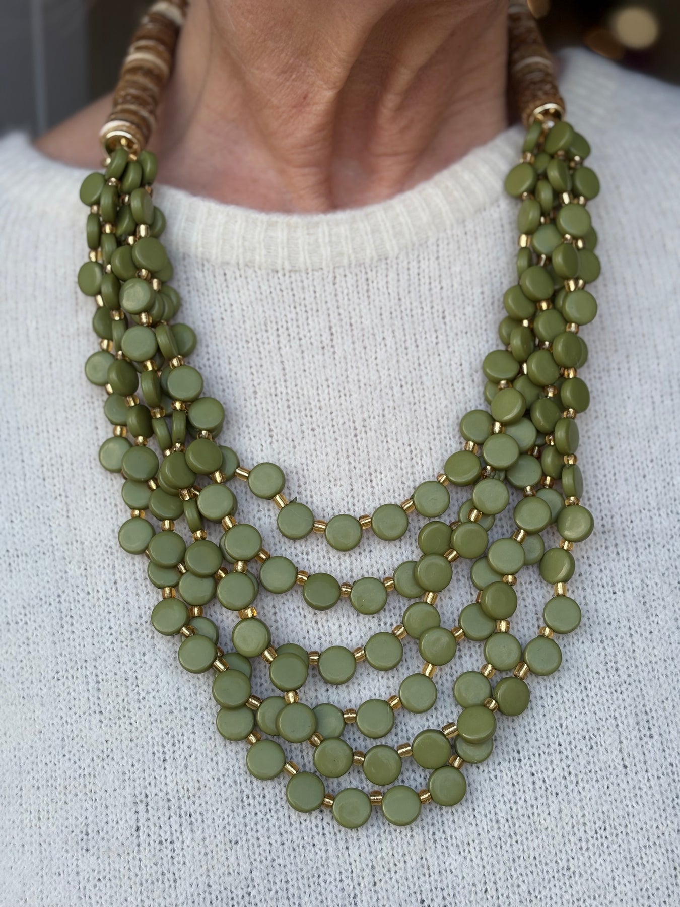 Coconut Shell & Mini Circle Bead Necklace | Forest Green & Gold