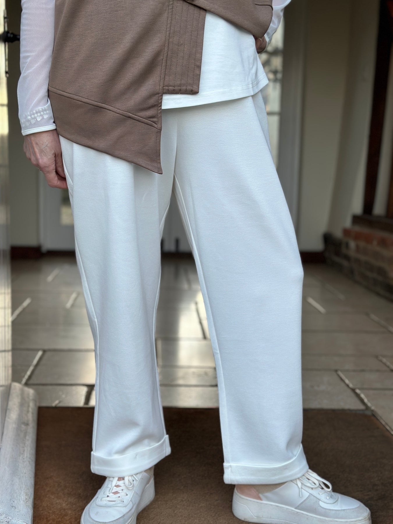 Upgrade your everyday wardrobe with the Soft Jersey Trouser With Cuff from Malissa J the perfect blend of comfort and effortless style. Designed in white, these trousers are crafted from soft, stretch-jersey fabric that feels smooth against the skin while offering all-day flexibility.