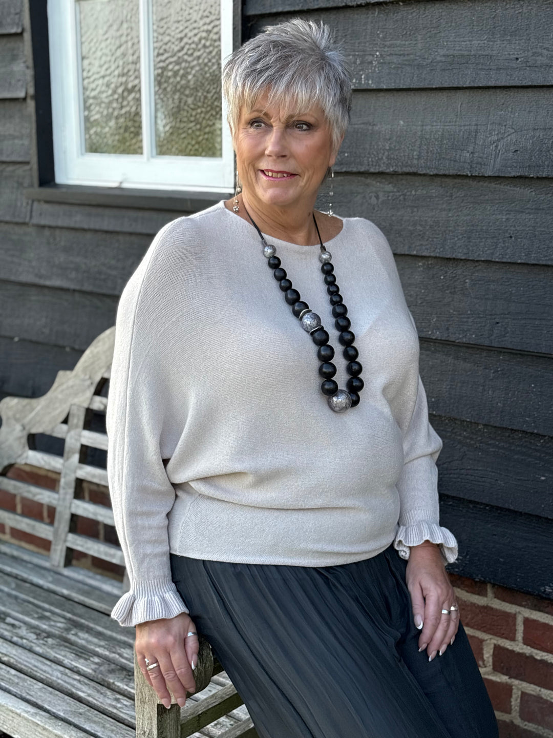 Loopy Detail Knitted Jumper Top - Malissa J | Stone