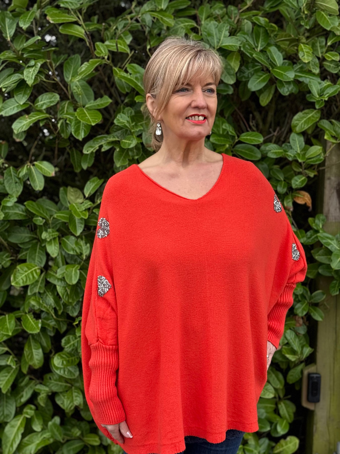 Embellished Heart Sleeve Soft Knit Top | Coral