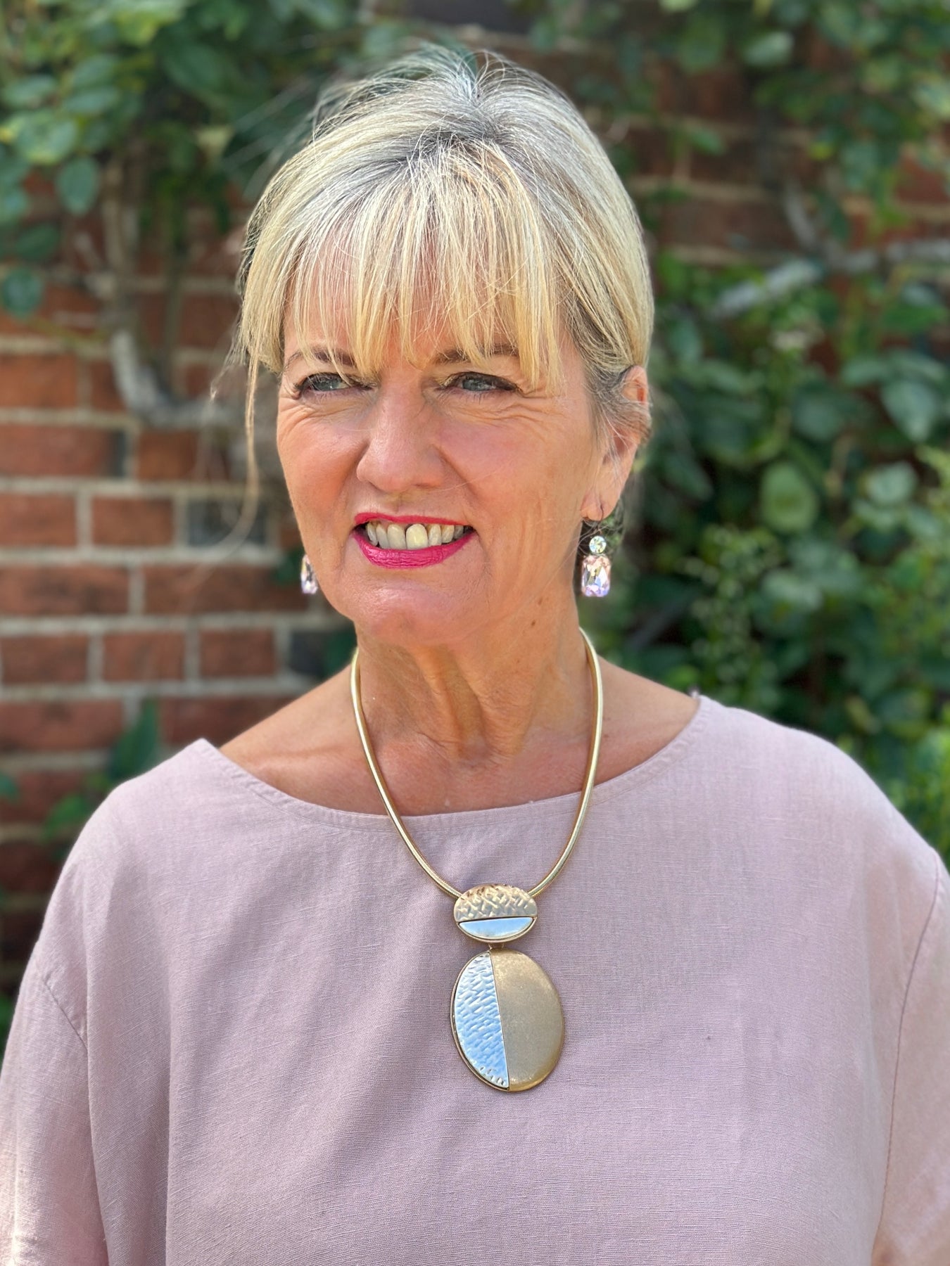 Design: Coil cord with 2 two-tone beetle shell-like pendants