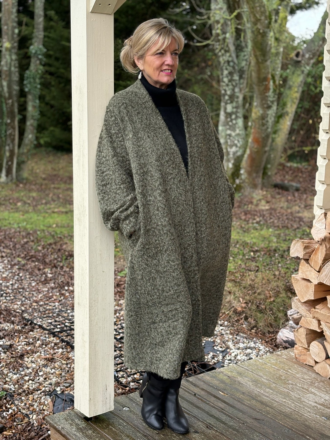 The relaxed, open-front style drapes gracefully for a flattering fit, and the deep side pockets bring both comfort and practicality. Whether you’re heading out for lunch or wrapping up for a winter walk, this coat will keep you warm in style.