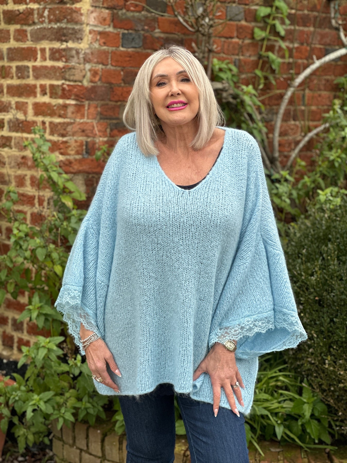 Lace Sleeve Knit Jumper | Baby Blue