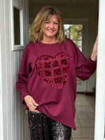 Elevate your casual wardrobe with this striking burgundy sweatshirt, featuring an eye-catching sequin heart design that catches the light beautifully. The innovative zip hem detail adds a modern twist, allowing you to customize the fit and create multiple styling options from one versatile piece. Crafted for comfort, this sweatshirt works perfectly for laid-back days or dressing up with your favourite accessories. Whether you're expressing your playful side or making a fashion statement, this unique piece delivers both style and wearability that'll have you reaching for it again and again.