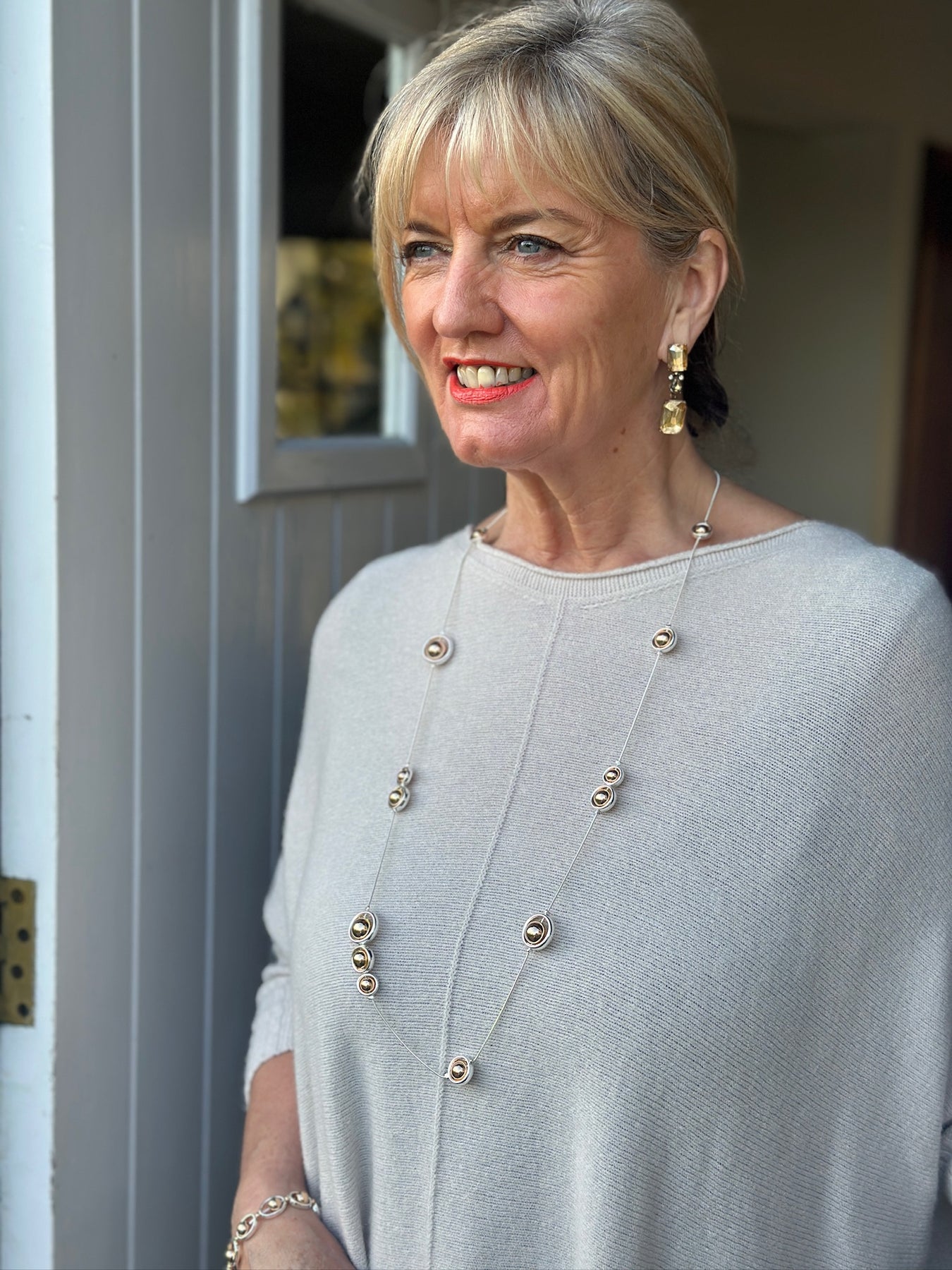Elevate your jewellery collection with this sophisticated long necklace, featuring a striking combination of silver and rose gold beads arranged in an orbital design. The mixed-metal aesthetic creates a contemporary contrast that complements both warm and cool undertones, making it exceptionally versatile for layering or wearing solo. The extended length offers styling flexibility—wear it long for an understated elegance or loop it for added dimension. Crafted with attention to detail, this piece transitions seamlessly from everyday wear to evening occasions, delivering timeless appeal with modern sensibility.